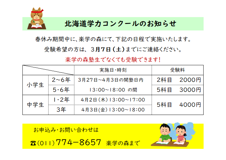 <終了>北海道学力コンクールのお知らせ  詳細はこちら